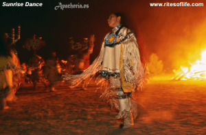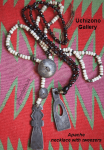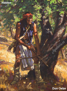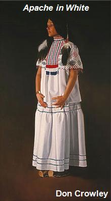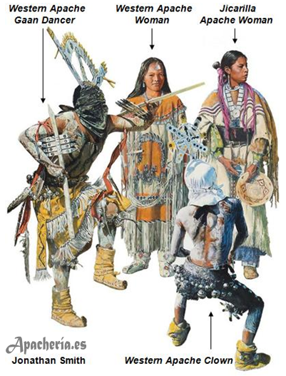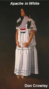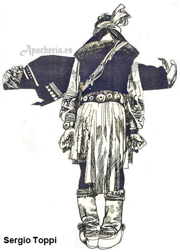 “Eskiminzin, el yerno de Santos, tenía el cabello recogido en dos largas trenzas y estaba completamente vestido con pieles. Llevaba aretes en las orejas y un collar de monedas de plata y pequeñas conchas alrededor del cuello. En su mano había un pequeño chal, que a veces se envolvía como un turbante alrededor de su cabeza”.