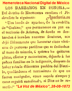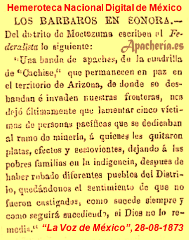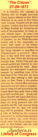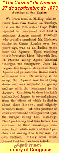 * El 31 de agosto de 1872, “The Weekly Citizen” informa: “Los apaches robaron el pasado