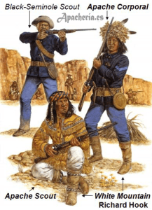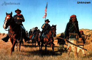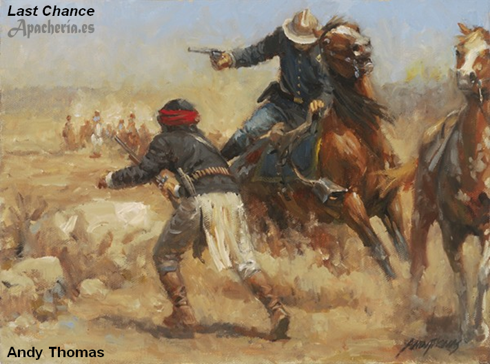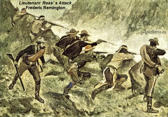 apaches en un enfrentamiento en Ojitos ([?]. Los soldados siguieron a los otros guerreros hasta la Reserva Chiricahua [Cochise County, Arizona].