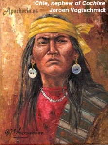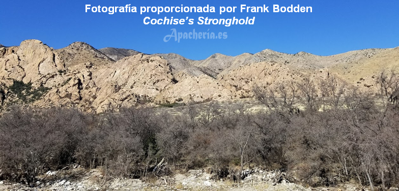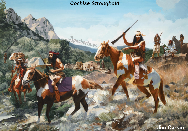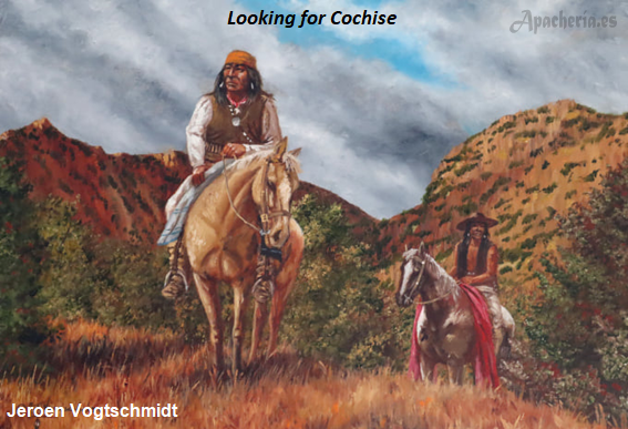 del resto, unos 300, prefirieron atravesar las montañas a caballo o a pie. Con ellos iba una pequeña escolta de 16 soldados del 8º de Caballería, más Tom Jeffords y Zebina Nathaniel Streeter. Cuando llegaron a Tularosa estaba allí Chiva con 60 o 70 de los suyos, diciendo que Cochise estaba más al sur, en las Mogollon Mountains [Grant & Catron Counties, New Mexico] con menos de 50 personas de su banda. Le había dicho que fuera allí, y que él le seguiría si Chiva era bien tratado en la Agencia. Pero se sabe que a mediados de mayo, grupos de chokonen y nednais estaban por el norte de Chihuahua. ¿Estaba Cochise con ellos? Es posible que sí. La banda nednai de Juh, con los bedonkohes de Gerónimo, estaban negociando la paz en Janos [Chihuahua], sumándose después los chokonen, a causa de la presión militar del gobierno de Sonora.