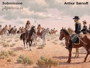 que acabó con el problema que representaba el gran jefe apache. Para Cochise, representaba el final de su largo camino, se encontraba cansado, con casi 60 años, su pelo largo hasta los hombros tenía mechones blancos. Granger le dijo que la paz solo era posible si los chiricahuas se establecían en una reserva. “Ningún apache podrá abandonarla sin permiso escrito del Agente y nunca será concedido para pasar al viejo México”, le dijo. Cochise replicó: “El sol ha estado muy caliente sobre mi cabeza… pero ahora he venido a este valle y he bebido de estas aguas… y me han refrescado… He venido… a vivir en paz contigo. Hablo claro y no quiero engañar ni ser engañado… Cuando Dios hizo el mundo le dio una parte al hombre blanco y otra al apache… ¿Por qué vinieron sin parar?… Los blancos me han buscado durante mucho tiempo. Estoy aquí. ¿Qué quieren?… Si soy tan valioso, ¿por qué no señalan cuando pongo el pie y miran cuando escupo?… Yo no soy jefe de todos los apaches… Hay indios que andan matando y robando. Yo no puedo mandarles… Vine aquí porque Dios me dijo que lo hiciera. Estaba dando vueltas con las nubes y el aire, cuando Dios me dijo que entrara aquí y estuviera en paz con todos… De joven recorrí todo este país, de este a oeste, y jamás vi a otra gente que no fuera la apache. Después de muchos veranos, emprendí de nuevo la marcha y descubrí que otra raza se estaba posesionando de él. ¿Cómo era posible? ¿Por qué los apaches parecen aguardar la muerte con resignación, como si la vida se les escapara por la punta de los dedos? Vagan por las colinas y llanuras en espera de que caiga el cielo sobre ellos. En un tiempo, los apaches fueron una gran nación, pero son pocos los que ahora quedan; por esta razón desean morir y ofrecen su vida con sus mismas manos. Muchos han muerto en la batalla. Debes hablar de forma clara y sincera, de modo que tus palabras penetren en nuestros corazones y los reconforten, como hacen los rayos de sol con nuestros cuerpos. Dime, si la Virgen María ha recorrido todas estas tierras, ¿Por qué nunca entró en los wickiups de los apaches? ¿Por qué nunca la hemos visto ni oído? No tengo padre ni madre, estoy solo en el mundo y nadie se ocupa de mí. Pues bien, he aquí a Cochise, puedes verlo y oírlo. Cuando yo iba por ahí, todos preguntaban por Cochise. Ahora él está aquí, lo ves y lo escuchas ¿Te alegras? Si es así, dilo. Hablad americanos y mexicanos, no quiero ocultaros nada, ni que vosotros me ocultéis nada; no te mentiré; no me mientas”.