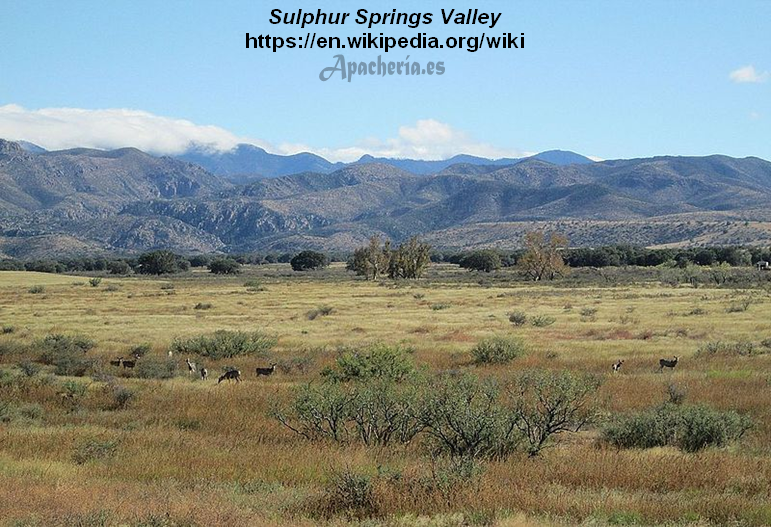 County, Arizona]. Su banda incursionó en Sonoita Valley [Santa Cruz County, Arizona] mientras tropas mexicanas acosaron a los apaches en las Chiricahua Mountains [Cochise County, Arizona]).