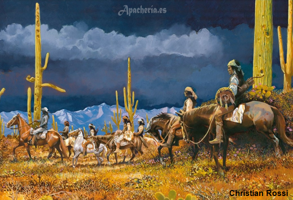 Los apaches partieron en dos grupos. Uno viajó con George H. Stevens [casado con una