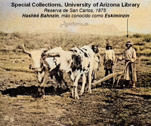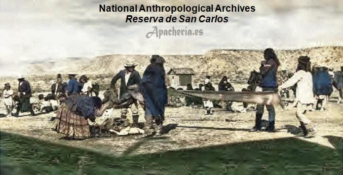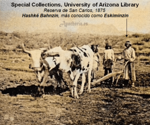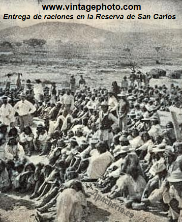 apache White Mountain], que había venido a Camp Apache para ayudar con el traslado. El otro fue con Clum. Un grupo de 60 apaches de San Carlos, bajo la dirección de Eskiminzin, fue dividido entre los dos grupos. Los primeros apaches llegaron el 29 de julio; y para el 31 de julio habían llegado los demás, siendo contados y recibiendo raciones. Luego Clum partió hacia Tucson, donde telegrafió a la Oficina de Asuntos Indios cuatro días después informando de que había hecho el traslado sin problemas. Desde el punto de vista apache, el gobierno estadounidense rompió la promesa, hecha por Vincent Colyer y Oliver Otis Howard, de permitirles permanecer en su propio territorio mientras estuvieran en paz. Desde 1871, ningún apache White Mountain realizó actos de guerra contra los colonos de Arizona, y en varias ocasiones prestaron un valioso servicio como scouts contra nativos “hostiles”. El traslado dividió a los apaches White Mountain, ya que algunos nunca fueron a San Carlos [la banda de Pedro o Hack-yaniltl-i-dn]. A pesar de que Clum aumentó a 25 hombres su fuerza policial, durante varios meses no pudo ejercer un control efectivo sobre los recién llegados. Pronto, alrededor de 200 se fueron de San Carlos a la Reserva Chiricahua [les mandaba Eskeltecela o Esh-kel-dah-silah, a menudo confundido con Esh-ken-la o Diablo] diciendo al agente Thomas Jeffords que no podían estar en el río Gila por la animosidad existente entre ellos y los apaches Pinal de San Carlos. Se unieron al grupo de bedonkohes de Chiva. Jeffords les dio carne vacuna y mantas, y dijo a los chiricahuas que les dejasen estar allí. El agente declaró que les alimentó porque tenían hambre.