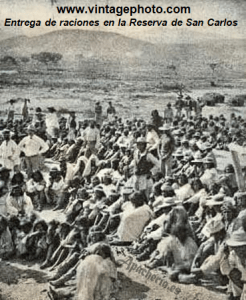 trasladados a San Carlos. (El territorio de los Tonto Apaches, al este del Verde River, y el de los yavapais, al oeste, sumaba unos 517.998 km². Los Tonto Apaches se llamaban a sí mismos Dilzhe’e, que significa “los cazadores”, y aunque no se llevaban muy bien con los yavapais, cuando comprobaron la superioridad estadounidense, aceptaron vivir con ellos en la Reserva del Rio Verde, de unos 2.072 km². Pensaron que lo peor había pasado.