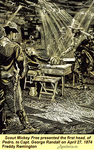discuten y tienen en Cañada Alamosa, según Orlando F. Piper, el responsable de la Agencia, “una o dos peleas campales” con resultado de dos o tres apaches muertos y varios más heridos.