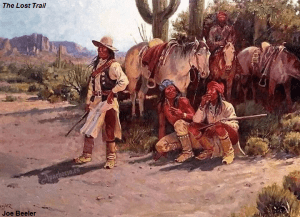 En Fort Bowie les dieron de comer, cambiando su caballo por un rifle y un revólver. Partieron a pie, y a 16 km al oeste de Fort Bowie, se encontraron con tres apaches chiricahuas, en actitud amistosa, que llevaban 12 caballos, varias sillas, mantas, pieles y comida. Billy intentó en inglés y en español [había aprendido español cuando asistió de niño a la escuela en Santa Fe, New Mexico] hacer un trato con los chiricahuas, quienes no estaban dispuestos a darles caballos, sillas de montar y mantas a cambio de una vaga promesa de un futuro pago.