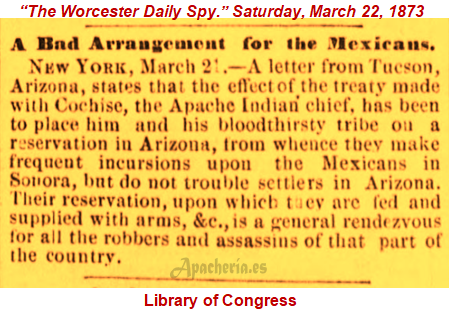 * Durante el verano de 1872, unos 300 apaches de varias bandas chiricahuas, llegaron a las