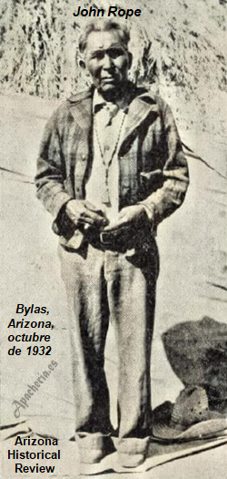 Cuando murió el 8 de agosto de 1944, John Rope fue enterrado con todos los honores militares por los exploradores apaches estacionados en Fort Huachuca (Cochise County, Arizona). Es una pena que su hoja de servicios no esté disponible, a causa del deficiente mantenimiento de los registros durante el siglo XIX. Los últimos exploradores apaches fueron reunidos en Fort Huachuca, el 30 de septiembre de 1947.