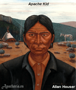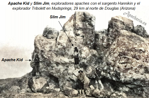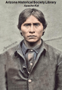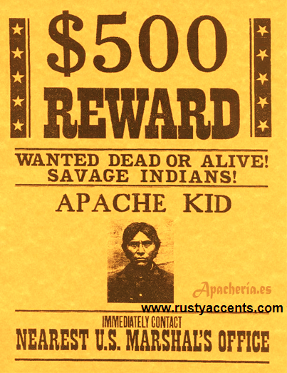 a Apache Kid en la escuela de la reserva en San Carlos, identificándole sin ninguna duda. El resto habían visto los carteles de recompensa con su rostro. Todos estuvieron de acuerdo en que el líder caído era Apache Kid. En el cuerpo del jefe había unos binoculares, algo raro, ya que solo algunos líderes los usaron al final de las guerras apaches, Gerónimo y Naiche entre ellos. Apache Kid también los usaba desde que se hizo explorador del ejército.