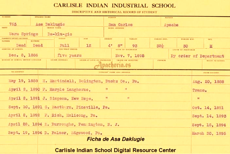 Llegaron el 14 de septiembre y estuvieron hasta el 30 de octubre. Eran Gerónimo; Naiche y
