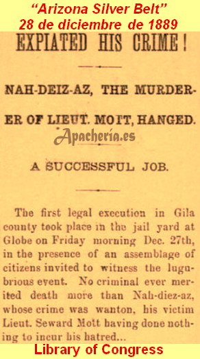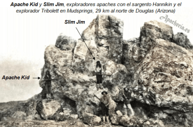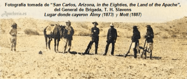 Muchos apaches [14] saliendo de San Carlos sin que nadie se enterase. De ellos, demasiados apaches muertos [12] para que ningún historiador se haya hecho eco. ¿Y los muertos mormones? Ellos tampoco comentaron este hecho. Lo más seguro, dada la coincidencia de fechas, es que fue una exageración de las noticias del enfrentamiento en el que resultó muerto Apache Kid).