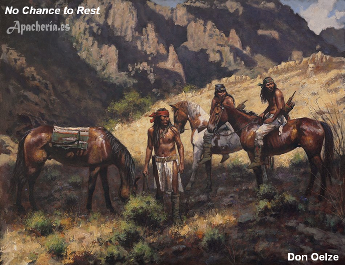 vida todo ha cambiado. Ahora los mejores guerreros son los que primero empiezan a correr, y su habilidad como guerreros depende de lo mucho que puedan correr cuando empieza el enfrentamiento. Te conozco, eres el hijo de Sibi [no era hijo de Al Sieber], hijo del hombre de hierro, y él te ha enseñado a luchar de todas las maneras posibles […]. Teníamos suficientes hombres para hacer una buena pelea, y podíamos huir en la oscuridad tras la lucha, pero no, estos bravos corren, corren, corren”. Todavía tenía su rifle. Agarrándolo por el cañón, lo giró sobre su cabeza y lo golpeó contra una roca, rompiéndolo y tirando el cañón al suelo, diciendo: “Para servirle a usted”. Luego volvieron al campamento.