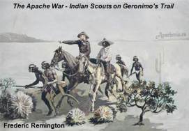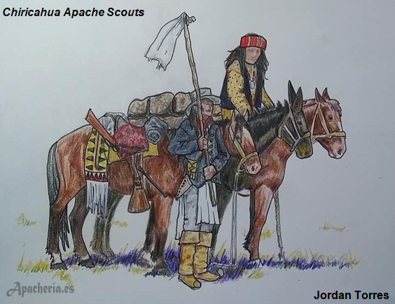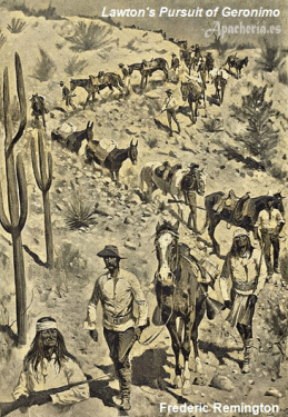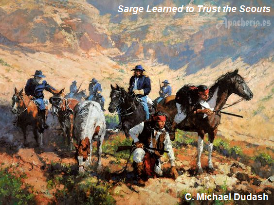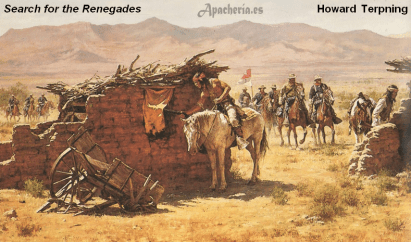 Madre para ir tras los chiricahuas. (El grupo, estaba equipado con raciones para 12 días, llevando 11 de las mulas más fuertes y mejor adaptadas [según declararía Henry W. Daly, el jefe de las recuas de mulas], tres empacadores, y 75 scouts apaches [entre ellos Dutchy, Mickey Free, Ruby [Rubie], Ramón o “Chi-kis-in” [hijo del jefe apache White
