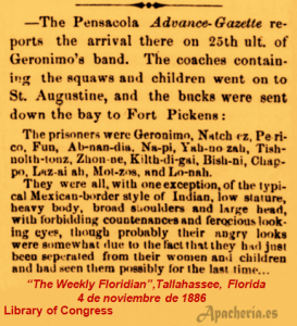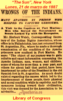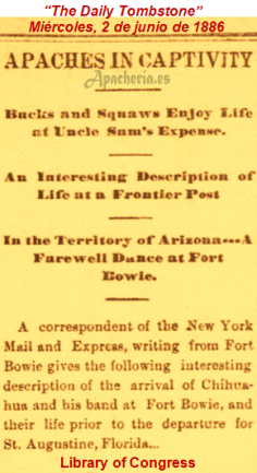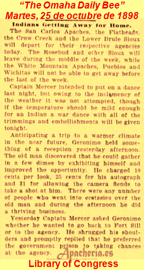 El periódico “The Omaha Daily Bee” informó el 25 de octubre que diferentes tribus indias, entre ellas los apaches San Carlos, regresaban a sus reservas; al igual que Gerónimo y los suyos a Fort Sill. Saldrían el 30 de octubre).