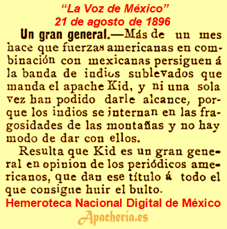 entre una banda de apaches y colonos mormones del asentamiento de Colonia Pacheco que no tuvo lugar. Ningún historiador se ha hecho eco de esa noticia ¿Por qué informó la prensa de esa noticia? Probablemente, fue una confusión con el enfrentamiento que provocó la muerte de Apache Kid. Por entonces también había prensa sensacionalista.