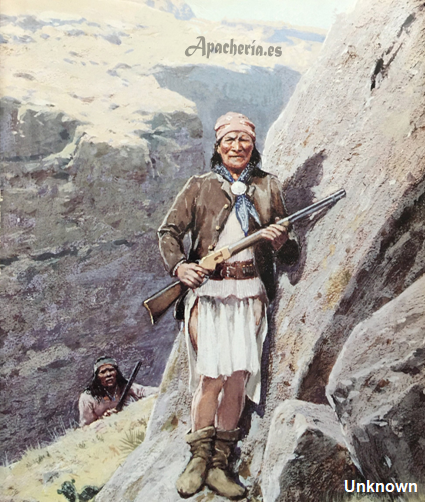 Después de avanzar 1’5 km de distancia, se encontraron con dos chiricahuas [uno de ellos era