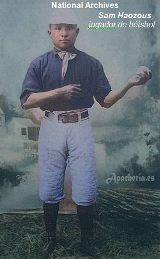 El muchacho apache bateó la pelota hacia el campo y corrió a la primera base. Gerónimo, que