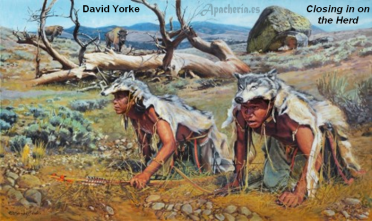 días en donde describe a los cazadores vaqueros (apaches) con la siguiente declaración: “… Los matan [a los bisontes] al primer flechazo, con una habilidad increíble, mientras se esconden en refugios camuflados, construidos en los abrevaderos, lo que fue presenciado por todos los que fueron allí…”. (Zaldívar, guiado por Jusepe Gutiérrez [el nativo náhualt de la expedición de Francisco Leyva de