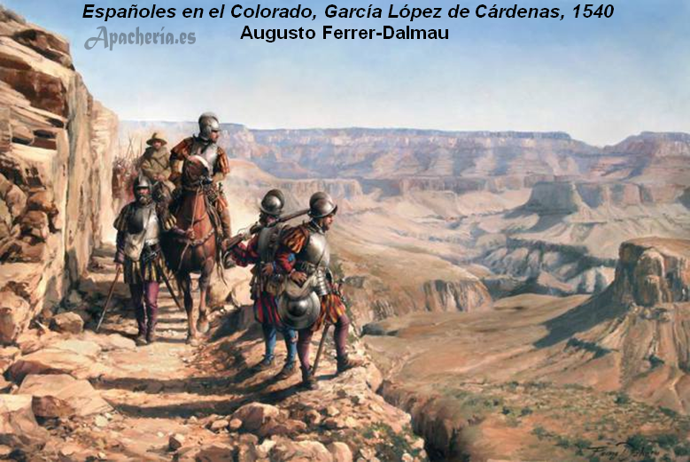 su segundo, García López de Cárdenas, a la zona de los nativos hopi, quienes le hablaron de un gran río, al que llamaron Tizón. Pronto llegaron a un paisaje inhóspito: “Vimos una gran barranca”, y el río al fondo, que a esa distancia pensaban que era pequeño. Desafiando al sol abrasador, los españoles quisieron bajar para abastecerse de agua, pero cuanto más bajaban, más sed tenían, debido a la alta temperatura que había en el fondo del cañón. Solo entonces supieron