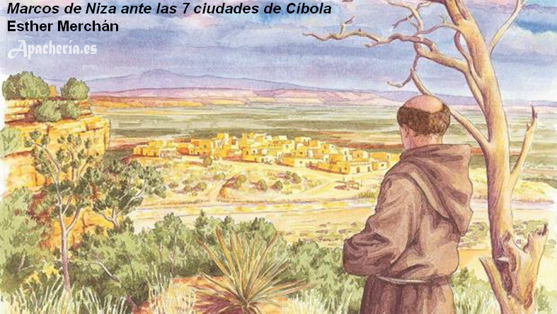 Marcos de Niza, fray Honorato y fray Antonio de Santa María, acompañados de Estebanico [el mismo que había llegado con Cabeza de Vaca] y de un grupo de nativos cristianos de México para comprobar la veracidad del informe de Cabeza de Vaca. (Pronto surgieron desavenencias entre los frailes y Estebanico, interesado en llenar su bolsa de piedras turquesas, abundantes en la zona, y de poseer cuantas mujeres indias encontraba, formando una especie de harén errante. Para asombrar a los nativos, iba ataviado con plumas y cascabeles, mostrando sus conocimientos de curandero aprendidos de Cabeza de Vaca. Cuando escuchó que existía una ciudad llamada Cíbola, se adelantó junto a otros nativos que les acompañaban para lograr la gloria de su descubrimiento.
