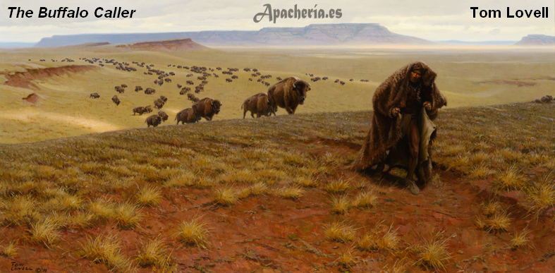 Tres vaqueros [apaches] cazadores de bisontes fueron a avisar a la expedición de que la gente