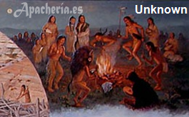 real otro día, 300 Querechos [apaches] con sus mujeres e hijos, los cuales fueron llamados y traídos del indio que vistió el general, los cuales son dispuestos, nobles de condición, amorosos y valientes y gallardos y ellas y sus hijos hermosos. Entraron cantando y bailando, alrededor del real, mostraron gran contento y alegría de vernos, hacían notables visajes hacia el cielo, que son ceremonias que usan en su idolatría con el sol. Dijeron que fuésemos bien venidos a sus tierras, que otros de nuestra naturaleza y semejanza habían pasado por sus tierras muchos años había, los cuales fueron medio y parte a que sus enemigos les volvieron a los que les toman cautivos, e mandaron a las nubes que les lloviese en sus tierras, curaron y resucitaron dolientes y muertos. Dijeron y creyeron que éramos hijos del sol a quien ellos tenían, temían y respetaban y adoraban por su Dios y afirmaban que habíamos bajado del cielo. Eran muy continuos e importunos a que les tocásemos y santiguásemos, que es ceremonia que empleó Alvar Núñez Cabeza de Vaca, por misericordia de Dios nuestro Señor, que para librarlos de las peregrinaciones y trabajos que padecieron permitió tantos y tan singulares beneficios y casos de orden natural. Estos milagros y otros contaron estos, sin errar ni discrepar de lo que afirma la historia referida.