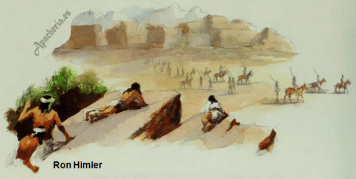 Una vez cerca de las llanuras, cuatro nativos vaqueros [apaches] se acercaron al grupo de