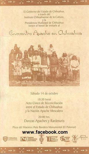 * El 14 de octubre de 2000, se produce un acto de reconciliación entre las autoridades del estado de Chihuahua y representantes de la Tribu Apache Mescalero. (Al día siguiente, el diario mexicano “El Universal” informaba: “Sumamente cautelosos y protocolarios, la presidenta y el vicepresidente de la Tribu Apache Mescalero, Sara Misquez y Frederik Chino, respectivamente, aseguraron que el destino de los indígenas tarahumaras es modernizarse o desaparecer.