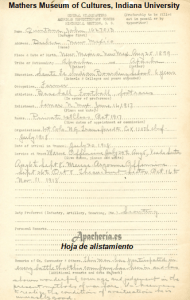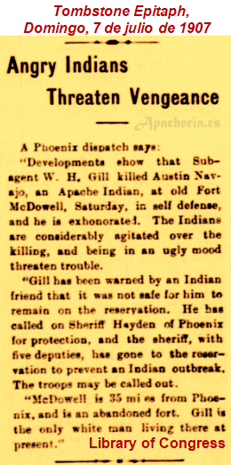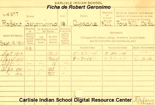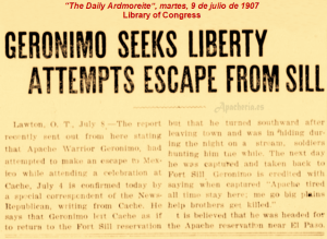* El 12 de diciembre de 1903, el coronel Enoch H. Crowder afirma que Fort Sill (Lawton, Comanche County, Oklahoma) pertenece a las fuerzas armadas y que los apaches deberían ser reubicados en Fort Reno (Canadian County, Oklahoma).