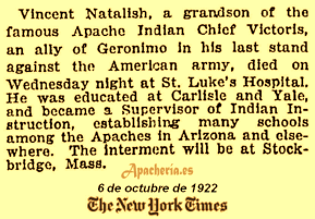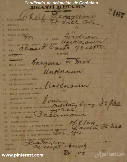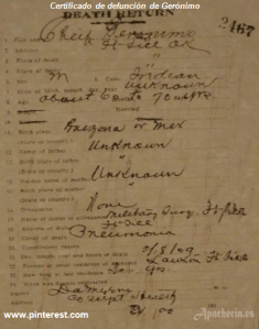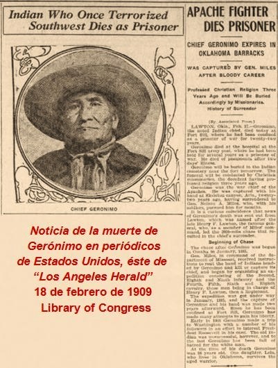 * En 1901, muere Chihuahua, siendo enterrado en el Cementerio Apache del Norte,