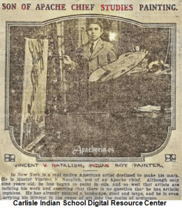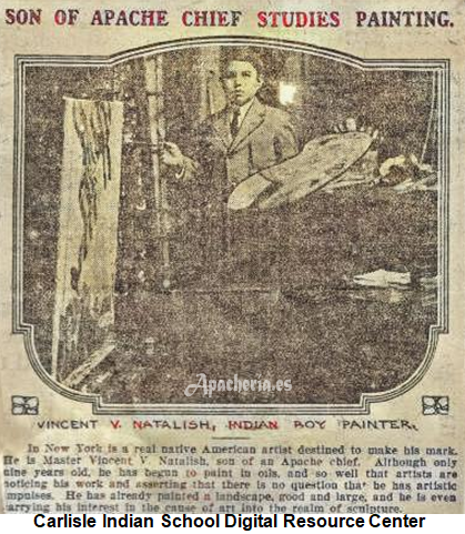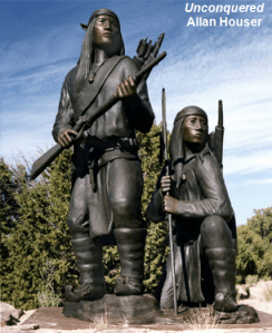 Mexico]. Sam Haozous, nieto del jefe chihenne Mangas Coloradas, es uno de los apaches que fue enviado como prisionero de guerra a Florida, Alabama y a Oklahoma. Su madre lo esconde bajo un barril para no ser enviado a la Escuela India de Carlisle hasta que el capitán Pratt se va con los demás jóvenes. Liberados años más tarde, en 1913, su esposa Blossom da a luz en 1914 a un hijo al que llaman Allyn Capron Haozous. Su nombre y apellido se cambian por otros con una fonética anglosajona, Allan Houser, siendo el primer hijo de apaches de Fort Sill que nace libre. A los 20 años, Houser dijo: “Había aprendido mucho sobre las costumbres tribales de mis padres y mientras más aprendía, más quería plasmarlo sobre un lienzo o algo similar. Así es más o menos como empecé”. Se trasladó a la «Santa Fe Indian School» para estudiar arte. Llegaría a ser uno de los más famosos escultores nativos norteamericanos por sus esculturas en bronce, piedra y acero. Se casa en 1939 con Anna Marie Gallegos, una navajo. Recibió numerosos premios: el “Guggenheim Fellowship”; el “Trofeo Waite Phillips”; una “Medalla de Oro” del Museo Heard de Phoenix; el “Palmes Académiques” del gobierno francés; el “American Indian Distinguished Achievement Award” del American Indian Resources Institute en Washington; premios al arte del Estado de New Mexico en 1980 y de Oklahoma en 1983; en 1992 se convierte en el primer nativo americano en recibir la Medalla Nacional de las Artes, recibida del presidente George Bush; en 1993