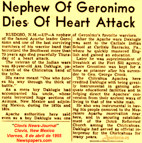 El 18 de enero de 1988, muere, a la edad de 80 años, el último explorador apache, Julius