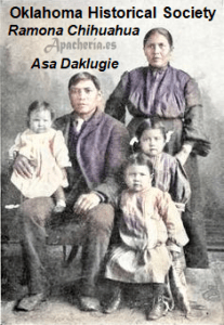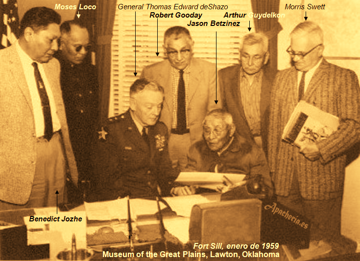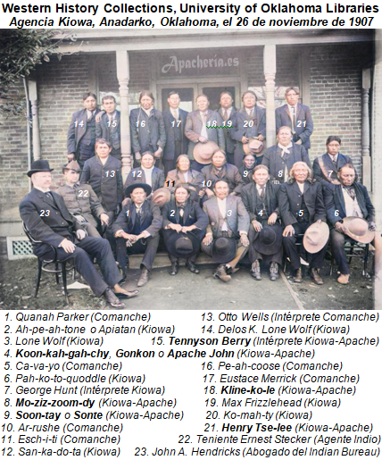 * El 6 de febrero de 1904, el gobierno estadounidense planea el traslado de los apaches a tierras al sur de Fort Sill (Lawton, Comanche County, Oklahoma) que pertenecen a kiowas y comanches.