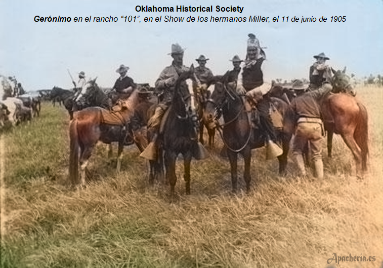 Mucha gente de St. Louis me invitaba a ir a su casa, pero mi guardián se negaba siempre. Cada domingo el presidente de la Feria me mandaba a buscar para que fuera a un espectáculo del Salvaje Oeste [Wild West Show. En 1902 le invitaron a hacer una gira de siete meses por todo el país, pero el Ministerio de Guerra se negó. Participó en el espectáculo cuando este fue a St. Louis o a las cercanías de Fort Sill]. Yo intervenía en los concursos de lazo ante el público. Había allí otras muchas tribus indias, y gentes extrañas de las que nunca había oído hablar.