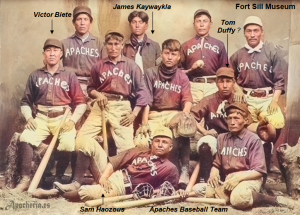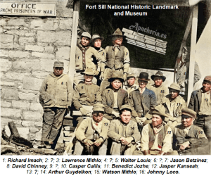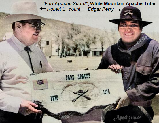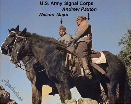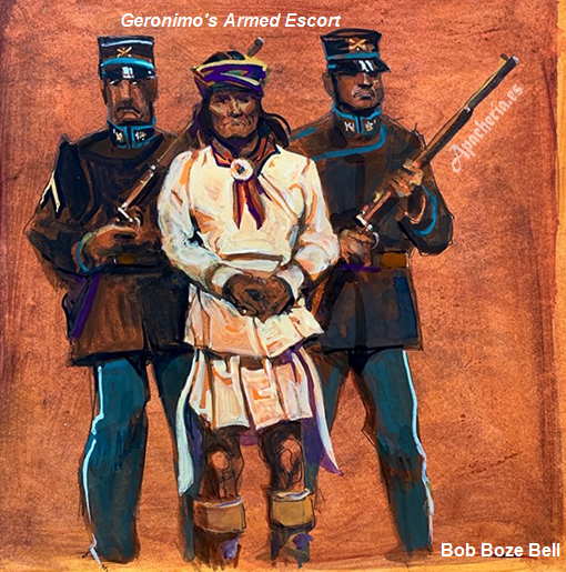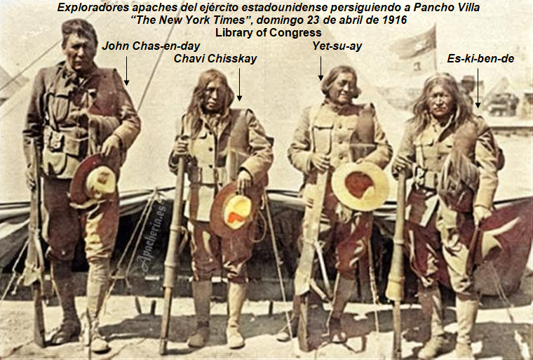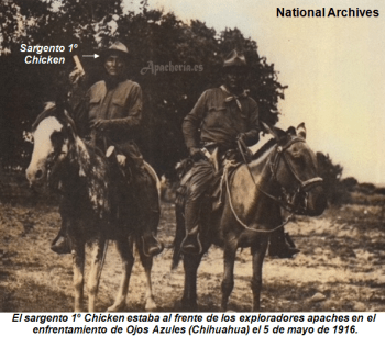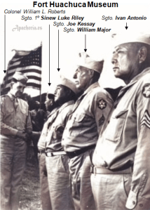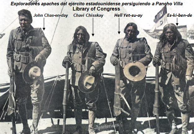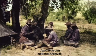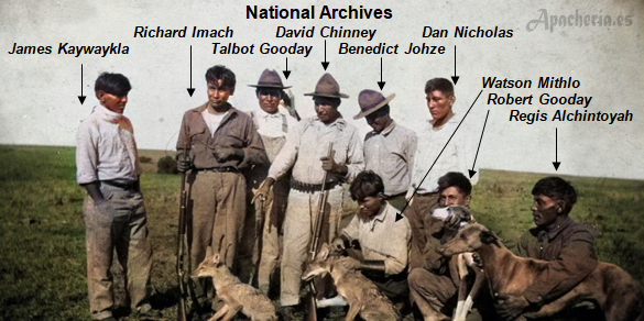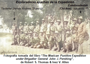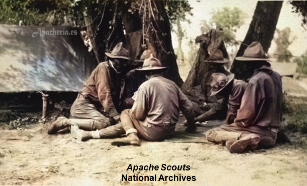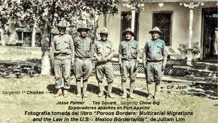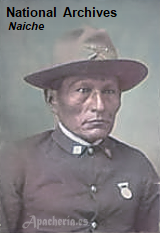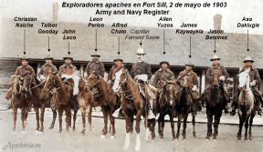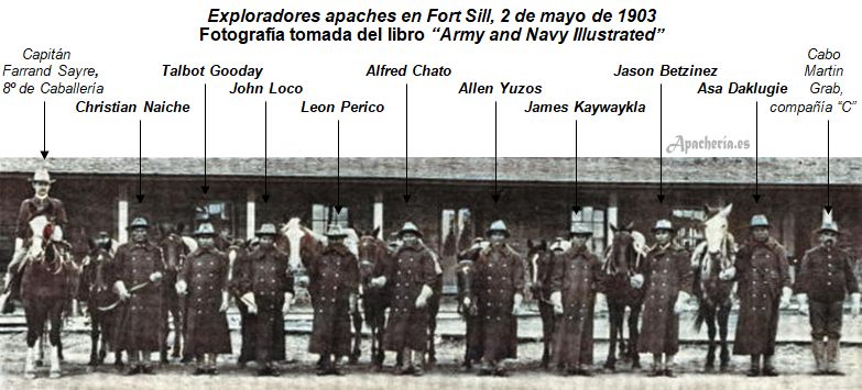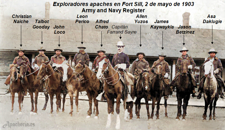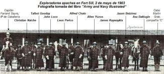 aparecen nueve prisioneros apaches sirviendo como exploradores en Fort Sill (Comanche County, Oklahoma) bajo el mando del capitán Farrand Sayre, del 8º de Caballería. (Los apaches eran Christian Naiche, Talbot Gooday, John Loco, Leon Perico, Alfred Chato, Allen Yuzos, James Kawaykla, Jason Betzinez y Asa Daklugie.