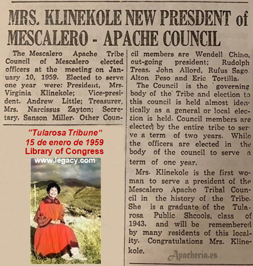 Apache Tribe”. (Durante su mandato, elevó el nivel de vida de la tribu, pero sus últimos años fueron controvertidos cuando planteó establecer un depósito de desechos nucleares en la Reserva Mescalero).