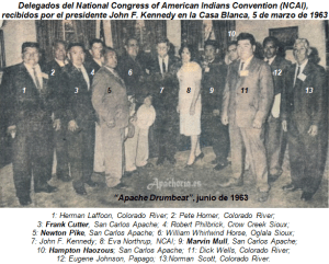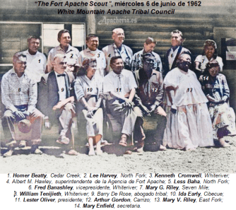 * El 20 de junio de 1973, el Tribunal de Reclamaciones de los Estados Unidos confirma la decisión de la “Comisión de Reclamaciones Indias” de adjudicar a la “Fort Sill Apache Tribe”, 16.489.096 $ por las tierras ancestrales perdidas. (Surgen diferencias entre los Fort Sill Apaches sobre la manera en que se distribuye la concesión de la reclamación de las tierras. Un conflicto mayor surge sobre quién califica la distribución a cada persona).