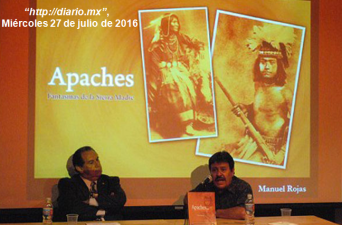 … Mediante la presentación y publicación de ‘Apaches… fantasmas de la Sierra Madre’, Manuel Rojas expondrá una política de estado segregacionista y genocida diseñada por el prejuicio racial y religioso de españoles y criollos de la Nueva España, intolerantes en su momento con el monoteísmo y la poligamia como parte de sus usos y costumbres de esa cultura aborigen…”.