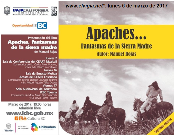 fantasmas de la Sierra Madre’. Ensenada, Baja California. Este mes el director teatral y dramaturgo mexicano Manuel Rojas presentará la segunda edición de su libro ‘Apaches…fantasmas de la Sierra Madre’, en distintos espacios del Instituto de Cultura de Baja California [ICBC], en Ensenada, Mexicali y Tijuana.