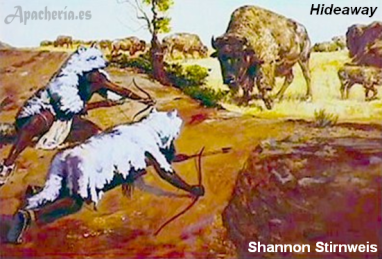 Los apaches seguían a los rebaños de bisontes, acercándose a ellos mientras estaban pastando o en los abrevaderos. Se untaban sus rostros y cuerpos con barro o se ocultaban bajo pieles de animales. A medida que