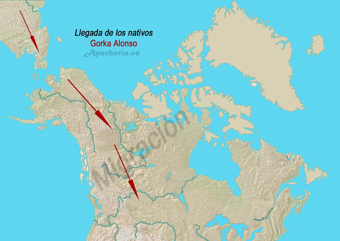 * Los primeros habitantes de América llegaron de Asia, probablemente, en diversas oleadas (según algunos antropólogos en dos; según otros en varias más) al final de la última glaciación, hace unos 10.000 – 20.000 años, atravesando el estrecho de Bering. Los atabascanos fueron uno de los últimos grupos en cruzarlo.
