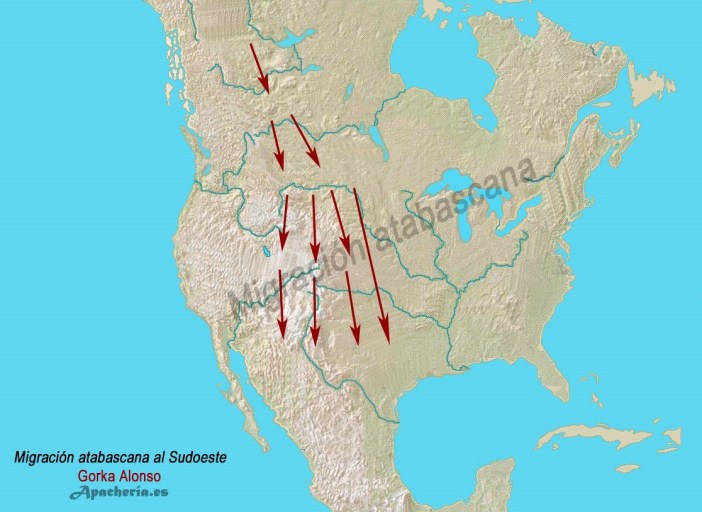 * Los apaches forman parte de la gran familia atabascana que tuvo sus asentamientos más antiguos entre Alaska y Canadá, concretamente en el valle del río Mckenzie, en el oeste de Canadá. (La familia lingüística atabascana estaba dividida en tres divisiones geográficas: Norte, costa del Pacífico y Sur. Los apaches pertenecían a la división del Sur. Una parte de esta familia se separó y emigró hacia el sur.