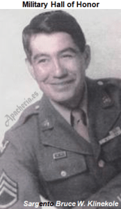 * Klinekole, Bruce W. Nació el 14 de febrero de 1917. Comenzó su servicio militar el 26 de marzo de 1941. El 9 de abril de 1942, el sargento Bruce W. Klinekole estaba sirviendo en la Batería “A“, Artillería Antiaérea de Costa n.º 515 en Bataan (Filipinas). Ese día fue capturado por los japoneses. Klinekole sobrevivió a la Marcha de la Muerte de Bataan, estando 1.240 días como prisionero de guerra. Fue liberado por el ejército ruso el 1 de septiembre de 1945 en Mukden (Manchuria).